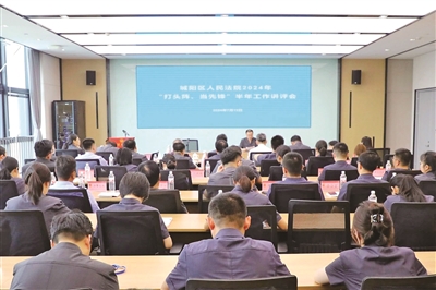 ■近日,城阳法院召开2024年“打头阵、当先锋”半年工作讲评会。15名部门负责人依次汇报2024年上半年工作成绩,实事求是查摆问题,明确下半年工作目标。