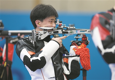 ■8月1日,射击男子50米步枪三姿决赛中,中国选手刘宇坤夺得冠军。 新华社照片
