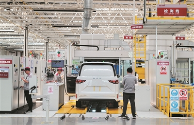 北京汽车制造厂(青岛)有限公司对生产的新能源汽车进行出厂检测。        梁 超 摄