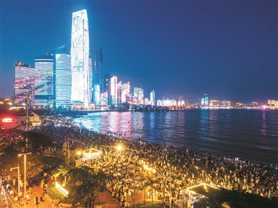 夏夜岛城,海风清凉,游人如织。当下,青岛抢抓“夜经济”机遇,夜游、夜景、夜秀、夜购、夜娱等齐发力,灯光秀、乘船夜游浮山湾、演唱会、歌手驻唱、夜间市集、美食大排档等接连不断,“夜”态迷人,持续给市民游客带来新惊喜。图为入夜后的青岛第三海水浴场,众多市民游客享受多彩惬意的夜生活。