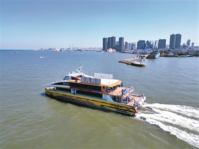 ■8月28日上午,由青岛旅游集团打造的青岛轮渡环游胶州湾航线正式运营。 王 雷 摄