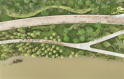 这里摇曳生姿,处处洋溢着自然之美。走近张村河,目之所及,河畔的青翠绿意扑面而来,仿佛是在向每一位到访者热情地敞开怀抱。不远处,河床湿地花园中点缀其间的小型“绿洲”,被滨水步道串联在一起,宛如大自然的鬼斧神工。漫步其上,一步一景,仿佛置身于一幅流动的生态画卷之中,令人流连忘返,心旷神怡。