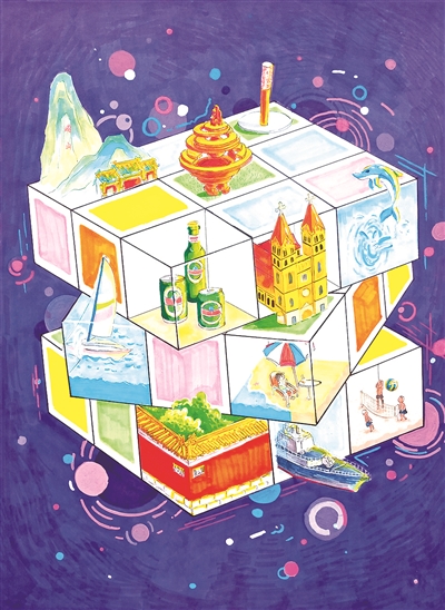今年比赛的创作主题是“青岛之美”。每座城市都有着自己的文化基因,独特的个性让城市别具一格、生动丰富。在孩子们眼里,青岛的美,美在城市的建筑,古典的飞檐翘角与现代的玻璃幕墙交相辉映,历史的厚重与现代的时尚在孩子的作品中形成了鲜明的对照;青岛的美,美在海洋的深邃辽阔,海洋带来的璀璨想象和人类探索海洋的历程,在孩子们的画笔下具象成梦幻的水母、《寻梦沧海》中的竞技帆船赛手齐鲲鹏等自然和人文符号;青岛的美,美在文化的兼容并包,海滩上缤纷的“脸基尼”,“恣儿街”的热闹景象,都被融入画中;青岛的美,还在于闪耀的城市品牌,青岛啤酒、钙奶饼干在孩子们的作品中频繁出现,成为他们心中的城市独特印记。
