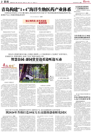 市委科技委员会日前出台《实施“蓝色药库”开发计划 建设青岛海洋生物医药产业体系工作方案》(以下简称《工作方案》)。《工作方案》聚焦海洋创新药物研发、转化、产业化等环节,提出汇聚创新链、产业链的上中下游力量,争取到2026年引进和培育高端人才20人以上,布局10至15个海洋候选新药系统临床前开发,获得5个以上创新药物临床批件,新增一批高端生物功能制品生产批件并实现产业化,以高质量成果产出助推青岛海洋生物医药产业高质量发展。
