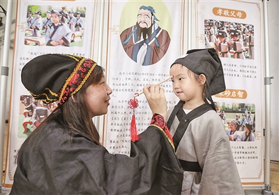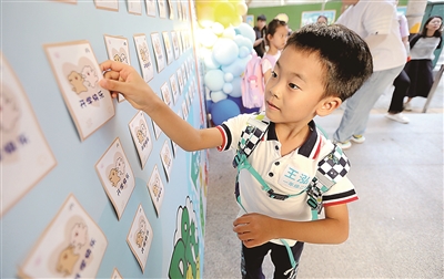 ■青岛上海路小学的学生抽取学校准备的幸运卡。 韩 星 摄