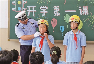 ■青岛李沧交警走进青岛五十八中附属初中,为同学们带来开学第一课。 韩 星 摄
