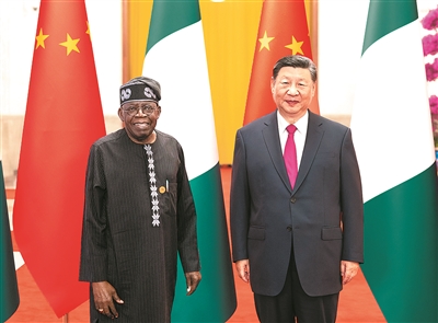 习近平指出,尼日利亚是具有重要影响的非洲大国,拥有巨大人口规模和发展潜力。建交半个多世纪以来,中尼始终相互尊重、平等相待,走出一条联合自强、合作共赢之路。近年来,两国在中非合作论坛框架内共同实施了一大批示范性、战略性合作项目。中国正在进一步全面深化改革、推进中国式现代化,这将为中尼关系发展带来更多机遇。双方要以高质量合作携手实现各自现代化,推动中尼关系实现新的更大发展。