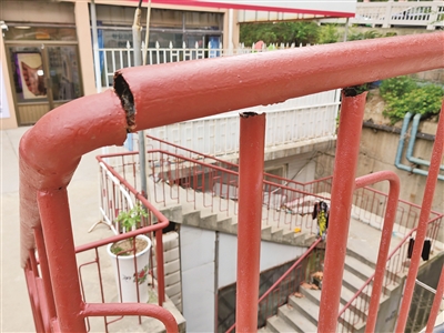 反映问题的市民告诉记者,这处护栏存在多年,一直修修补补用到现在。大约一周前,他发现问题后便向社区反映,但至今没有解决。“架设护栏是为了保护行人,但因为年久失修,护栏本身反而成了安全隐患,真不应该。”他说。