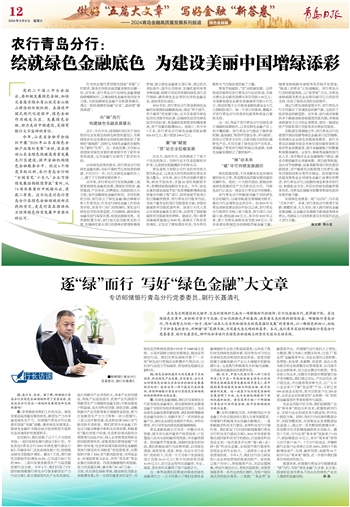 2024年初,农行青岛分行更是将绿色金融的发展推向战略新高地,提出“两个提升、两个确保”的发展目标,这不仅是提升绿色信贷在贷款中的比重、县域绿色信贷在绿色信贷中的比重,更是确保监管要求的精准落地,资产质量的稳健如山。据统计,到今年7月末,农行青岛分行绿色金融贷款余额524.02亿元,累计投放248.6亿元。