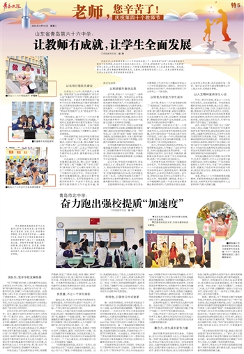 学生增值发展幅度位居市北区前列;获评20余项国家、省市级荣誉;打造国防、足球、武术、科技等办学特色,学生发展百花齐放……建校4年来,青岛市北中学在齐鲁名校长张青涛的带领下,踏上了一条高速发展之路。学校牢牢把握“强校提质”的机遇,通过强队伍、抓质量、创特色、聚合力,实现学校办学质量的跨越式提升,真正办好老百姓家门口的好学校。