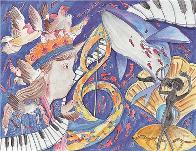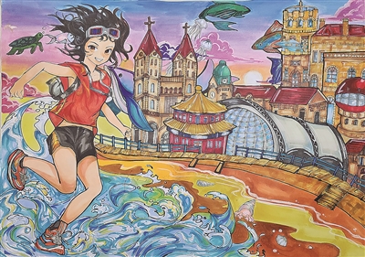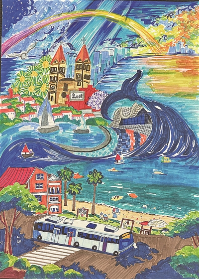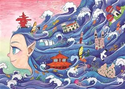 由青岛市教育局、青岛日报社联合主办,青岛市天泰公益基金会支持,青岛旅游集团文化演艺有限公司友情支持的2024年青岛市中小学生暑假绘画(创意设计)比赛征稿结束。今年比赛的创作主题是“青岛之美”。在学生的画作里,许多的创作灵感来自《寻梦沧海》这部音乐剧。本期,本报选取部分描绘《寻梦沧海》主题的作品予以展示。