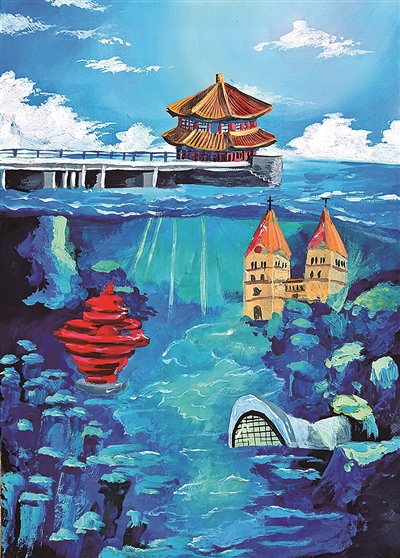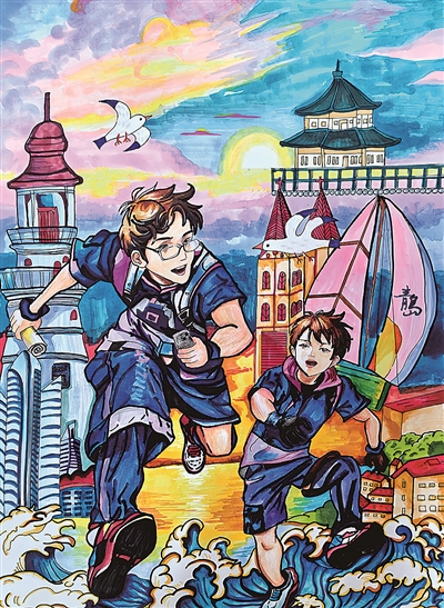 学生们画作中融入的诸多青岛文化元素,与《寻梦沧海》的主题相呼应,共同构成了一幅幅绚丽多彩的“青岛之美”画卷。 赵 黎