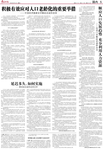 9月13日,全国人大常委会会议表决通过了关于实施渐进式延迟法定退休年龄的决定并对外发布。退休年龄具体怎么延?何时开始实施?能不能自愿选择弹性提前退休?“新华视点”记者第一时间采访权威专家,梳理政策要点。