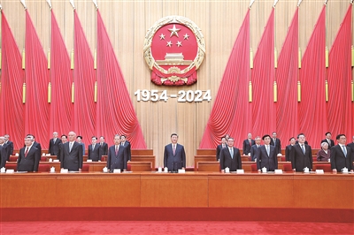 大会在雄壮的国歌声中开始。习近平发表了重要讲话。他指出,人民代表大会制度是中国共产党领导中国人民艰辛探索长期奋斗的成果,是从中国土壤中生长起来的全新政治制度,是人类政治制度史上的伟大创造。人民代表大会制度的建立,意味着中国政治从根本上实现了由少数人掌握政权、绝大多数人受压迫被剥削到中国共产党领导、人民当家作主的伟大跨越,实现了中国政治制度的伟大变革。