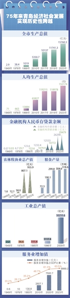 2024年是新中国成立75周年。青岛市统计局、国家统计局青岛调查队近日联合发布新中国成立75周年青岛经济社会发展成就报告,从综合实力、产业变化、开放发展、设施建设、民生改善、成果共享等多个方面,全方位展现了75年来全市经济社会发展成就。
