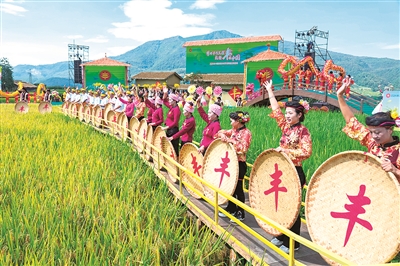 ■9月22日,在云南省保山市龙陵县龙江乡举行的第七个中国农民丰收节云南省主场活动现场,演员在表演节目。9月22日是农历秋分,我国迎来第七个中国农民丰收节,各地举行丰富多彩的活动欢庆丰收。