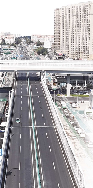 一头连着高速公路,一头接着市内路网……跨海大桥高架路是东岸城区“四纵五横”快速路网中的“第三横”,是胶州湾大桥青岛端核心疏解通道之一,也是贯通东西、实现区域互通互联的市区东西向主动脉。去年6月,全长约1.6公里的跨海大桥高架路二期实现主线通车。二期工程建成后,有效提升了东岸城区快速路网效能,缓解了海尔路、辽阳路的沿线拥堵状况。今年8月底,跨海大桥高架路二期剩余匝道工程通车,标志着东岸城区快速路网“第三横”实现全线贯通。工程包含剩余定向匝道、青银高速东半幅辅助车道以及立交区规划滁州路地面道路。建成通车后,实现了青岛东岸城区“四纵五横”快速路网“第三横”和“第三纵”的无缝衔接、闭环成网,跨海大桥高架路与青银高速可高效衔接转换。正在开发建设中的张村河片区也因此实现与高速路网及青岛北站、青岛站、胶东机场等交通枢纽的快速联通,出行效率和土地利用价值进一步提升,交通集聚和辐射中心功能持续增强。
