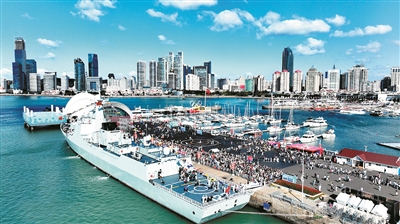 10月3日,庆祝中华人民共和国成立75周年北部战区海军舰艇开放日活动在青岛圆满结束。这是人民海军首次在国庆假期成规模组织舰艇开放活动,5艘现役主战舰艇在青岛奥帆中心码头和青岛港三号码头迎接八方来客,以海军特殊的礼仪为祖国庆生。据北部战区海军有关部门介绍,10月1日至3日,前来参加舰艇开放日活动的参观人数超过12万人次。舰艇开放日活动成为假日市民游客打卡的热点,也让青岛这座城市在国庆假期展现了“海军城”的独特魅力。
