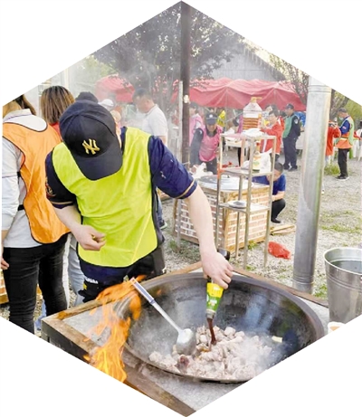 胶州市洋河镇艾山乡村振兴示范片区在开展“艾山揽月”星光音乐会、玩偶巡游茂腔大戏、“洋小淘”市集等活动的基础上,以示范片区兴郭村“手工作坊”打造为突破点,融合区域农产品手工特色,以研学互动、游客体验等多种方式进行漆扇、剪纸、艾绒香包制作,在增加区域农产品市场化运行广度和深度的同时,依托农文旅深度融合带动农民增收。记者看到,青桐农宴游客络绎不绝,流苏酒肆内游客用歌声为祖国献上美好祝福。