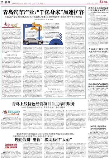 | 青岛日报社(集团)数字报纸(包括《青岛日报》、《青岛早报》、《青岛晚报》、《老年生活报》)的一切内容(包括但不限于文字、图片、PDF、图表、标志、标识、商标、版面设计、专栏目录与名称、内容分类标准以及为读者提供的任何信息)仅供青岛日报社(集团)读者阅读、学习研究使用,未经青岛日报社(集团)及相关权利人书面授权,任何单位及个人不得将青岛日报社(集团)数字报纸(包括《青岛日报》、《青岛早报》、《青岛晚报》、《老年生活报》)所登载、发布的内容用于商业性目的,包括但不限于转载、复制、发行、制作光盘、数据库、触摸展示等行为方式,或将之在非本站所属的服务器上作镜像。否则,青岛日报社(集团)将采取包括但不限于网上公示、向有关部门举报、诉讼等一切合法手段,追究侵权者的法律责任。 |