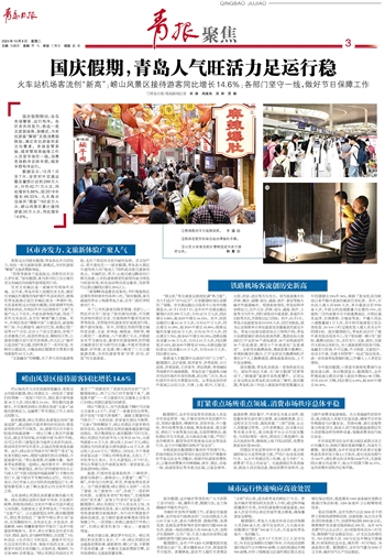 ~~~火车站机场客流创“新高”;崂山风景区接待游客同比增长14.6%;各部门坚守一线,做好节日保障工作