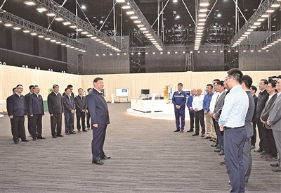 随后,习近平来到合肥滨湖科学城,察看安徽省重大科技创新成果集中展示,听取当地推进科技体制机制创新、加快科技成果转化等情况介绍,同现场科研人员和企业负责人亲切交流。他在智能网联汽车、新一代信息技术、新能源、人工智能、生命健康等高新科技产品前一一驻足,仔细察看,不时表达赞赏之意。习近平指出,推进中国式现代化,科学技术要打头阵,科技创新是必由之路。高新技术是讨不来、要不来的,必须加快实现高水平科技自立自强。科研工作者是推进中国式现代化的骨干,要拿出“人生能有几回搏”的劲头,放开手脚创新创造,为建设科技强国奉献才智、写下精彩篇章。
