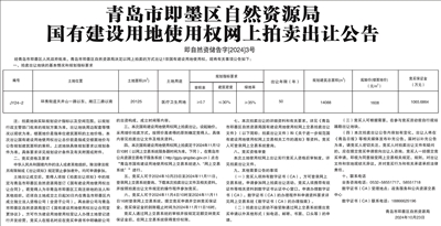 青岛市即墨区自然资源局国有建设用地使用权网上拍卖出让公告