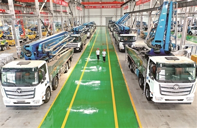 “我们的特种车辆主要应用于建筑工程领域,主要生产混凝土泵车、云梯车、高空作业车等6种专用车辆,依靠性价比和优质服务赢得市场,订单已经排到明年了。”杨世法告诉记者。