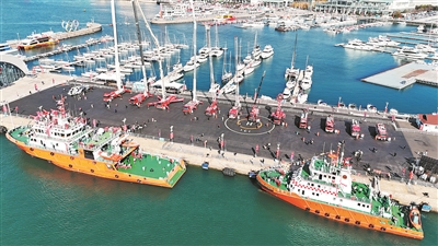 ■11月8日,2024年青岛消防市民开放日活动在青岛奥帆基地举办。活动现场展出了包括热成像仪、生命探测仪、灭火机器人等在内的各类型消防“神器”,以及多类型消防车辆、消防直升机、消防船等“大块头”消防装备。活动吸引了4000余名市民现场参观互动。