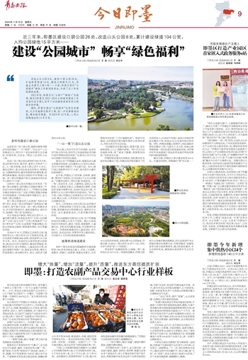 近三年来,即墨区建设口袋公园26处,改造山头公园8处,累计建设绿道104公里,人均公园绿地15平方米——~~~