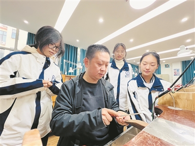 职业教育要想发展好,必须与产业紧密结合,必须要不断创新。随着“国潮风”越来越火,越来越多的老字号、新品牌创新挖掘中华优秀传统文化资源,引领了一次又一次时尚消费潮流。在专业建设过程中,身为学校教务处主任的孙赟杰敏锐地捕捉到了行业发展变化,特别组建了由学校优秀教师和企业工艺美术大师、骨干技师组成的产品设计研发团队,共同传承创新珠宝传统技艺。目前,学校已将掐丝珐琅、花丝镶嵌、金属錾刻、首饰绳艺、金属锻造等珠宝非遗技艺引入专业教学。“今年上半年,我们成功加工出了直径仅有0.08毫米的金、银花丝,相当于一般头发的粗细,这项技术不仅可以降低首饰制作成本,还可以大大提升设计的美观度。”孙赟杰介绍。