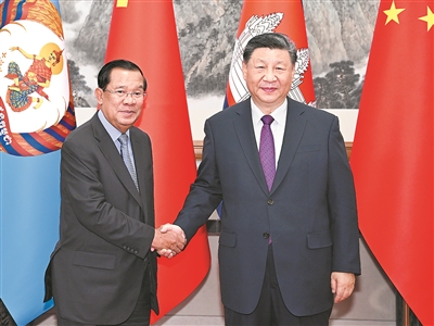习近平指出,当前,国际形势变乱交织,全球性挑战层出不穷,考验着各国的应对和选择。中柬两国都致力于做世界的和平力量、发展力量、进步力量。中方将继续支持柬埔寨在国际和地区事务中发挥更大作用,壮大“全球南方”力量,支持东盟坚持战略自主,维护中心地位,坚决反对外部势力将冷战思维引入本地区,坚定不移推动东盟一体化和共同体建设。中方愿同柬方坚定道不改、志不变的决心,增强底线思维,加强协作和配合,共同应对各种风险。