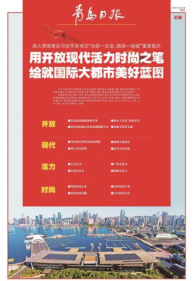为深入贯彻落实习近平总书记“办好一次会,搞活一座城”重要指示,青岛日报于2019年3月8日推出“用开放现代活力时尚之笔 绘就国际大都市美好蓝图”封面版。