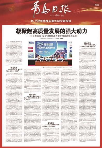 2019年4月14日至6月26日,青岛利用15个晚上完成15个攻势作战方案的答辩。青岛日报6月28日推出“写在15个攻势作战方案答辩圆满结束之际”封面版。