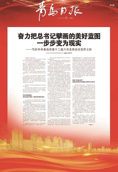 2019年8月2日,中共青岛市委十二届六次全体会议召开。青岛日报当日推出封面版。
