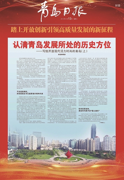 为凝聚共识、迅速掀起创新改革的热潮,青岛日报于2019年8月13日至15日,连续3天推出“踏上开放创新引领高质量发展的新征程”封面版。