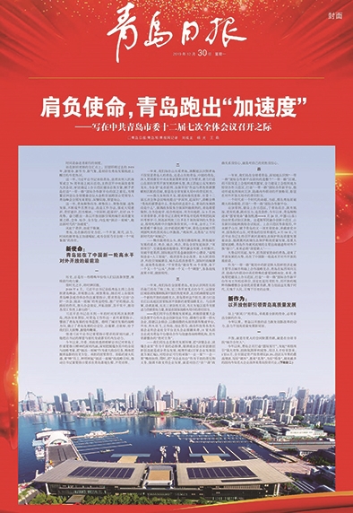 2019年12月30日,中共青岛市委十二届七次全体会议召开。青岛日报当日推出封面版。