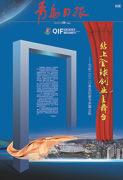 | 2020年10月28日,2020青岛创新节在青岛国际会议中心开幕。青岛日报当日推出“站上全球创业主舞台”封面版。 |
