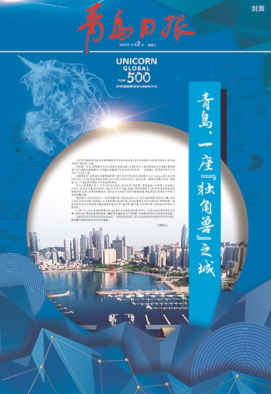 | 2020年12月2日,2020全球独角兽企业500强大会在青岛举办。青岛日报当日推出以“青岛,一座‘独角兽’之城”为主题的封面版。 |