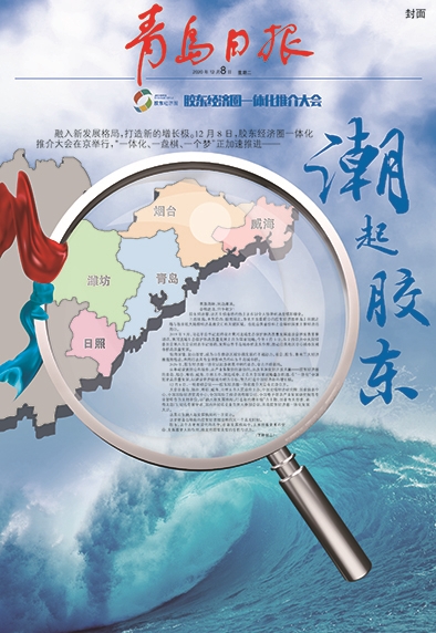 | 2020年12月8日,胶东经济圈一体化推介大会在北京举行。青岛日报当日推出“潮起胶东”封面版。 |