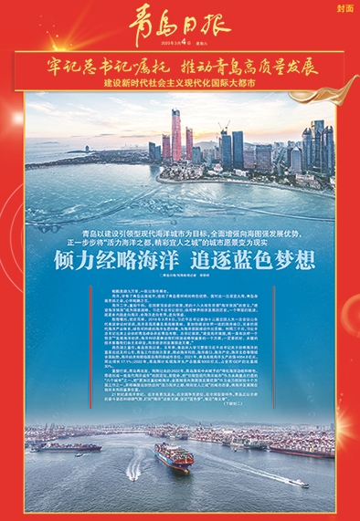 | 2023年3月3日、4日、7日、8日,青岛日报推出系列封面版,宣传青岛牢记习近平总书记嘱托,锚定“建设新时代社会主义现代化国际大都市”总目标,乘势而上全面推进社会主义现代化建设的历程。 |
