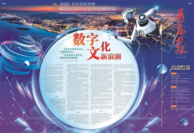 | 2023年4月7日至9日,2023青岛数字文化应用发展大会举行。青岛日报于4月7日推出以“数字文化新浪潮”为主题的通版封面版。 |