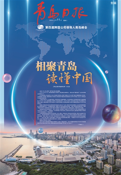 | 跨国公司领导人青岛峰会自2019年起每年在青岛举办。五年来,峰会品牌不断擦亮,青岛对外开放水平全方位提升,与世界的交流合作越来越紧密,青岛日报也连续五年推出跨国公司领导人青岛峰会封面版。 |