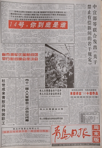 | “14号”,城市文明的一个标志性符号 1997年1月24日,一篇饱含深情的文章《14号,你到底是谁》刊登在《青岛日报》的头版头题,由此在全市引发“寻找14号”关爱困难群体的爱心活动。“14号”不再是一个数字,而成为青岛精神文明建设的一个代号、一个亮点。这组系列报道荣获山东省“五个一工程奖”。 |