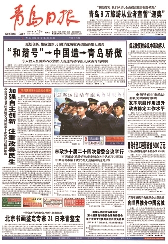 | 追踪自主创新的“和谐号” 2007年4月18日,全国铁路第六次大提速正式启动,这次提速中万众瞩目的主角,是时速达200公里的“和谐号”高速列车。总共52列“和谐号”中,九成为青岛制造。《青岛日报》长期关注此事,首批国产化动车组投入运营前的三年里,记者多次采访一批参与研制中国首列高速列车的骨干科研技术人员,推出了《“和谐号”→中国造→青岛骄傲》等稿件。 |