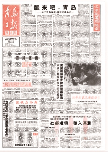 | 为改革开放鼓与呼 《醒来吧,青岛》是1992年4月11日《青岛日报》刊载的一篇稿件。这一年年初,邓小平在南方视察并发表南方谈话。《醒来吧,青岛》就是在这一背景下刊发的。随后,《青岛日报》还推出了《超越吧,青岛》《扬起风帆吧,青岛》等稿件,在社会引发强烈反响。 |