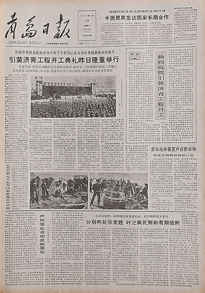 引黄济青是解决青岛供水问题的关键工程。1984年9月24日,《青岛日报》刊登了引黄济青工程批准上马的新闻,1986年2月19日刊发该工程完成地质勘探的消息,同年4月16日刊发项目开工的新闻,并配发评论员文章《党政军民齐动员,办好全市的大喜事》。之后的一个多月里,又进行了集中报道,先后刊发消息、通讯、评论等报道12篇,图片十余幅。此后至1989年11月25日工程正式完工通水,报道一直没有间断。