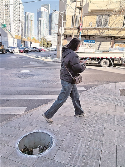 网友“青岛友友”就住在附近。她告诉记者,这个洞口处原来立着一根线杆,今年11月底,有人移除了线杆却没有封闭洞口,留下隐患。“这里地处馆陶路历史文化街区,周边有居民楼和学校,洞口周边没有任何提示,行人稍不注意就会踏空受伤”。