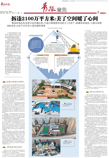 ~~~青岛拆违治乱攻坚行动开展以来,已助力新增停车泊位2.1万余个,新建休闲场所、口袋公园等300余处,218个片区导入项目顺利落地