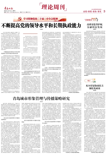 第三,抓住风口,擦亮城市崭新名片。青岛凭借其海洋经济和开放创新的双重优势,在海内外享有盛誉。应统筹国内媒体、海外媒体和社交媒体资源,深入挖掘题材,巧妙策划议题,以小切口的生动事例讲好青岛故事;定期邀请国际友人和媒体人士来青体验,通过他们的视角和声音,讲述青岛作为“开放之城、产业之城、创新之城、海洋之城、品质之城”的独特魅力所在;探索打造数字化城市形象资源共享平台,创作一系列高质量的视觉IP作品和正能量的微短剧等,捕捉和记录城市风采,提升城市知名度和影响力。